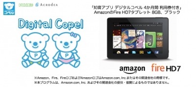 株式会社アクロディア(本社:東京都渋谷区、代表取締役社長:堤 純也)は、Google Play、App Store、Amazon アプリストアで配信中の知育アプリ『デジタルコペル』において、静岡県焼津市の「ふるさと納税」のお礼品のラインナップをさらに拡充し、「デジタルコペル4か月間利用券付きAmazonのFire HD7タブレット8GB、ブラック」を追加いたしましたのでお知らせいたします。