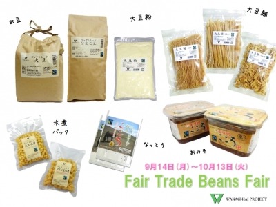 10月13日「豆の日」をご存知ですか?フェアトレードの大豆とひよこ豆を販売する「わかちあいプロジェクト」では、豆類のフェアトレードについて広く知ってもらうため、豆の日にあわせて9月14日(月)~10月13日(火)までの1カ月間、『Fair Trade Beans Fair』を開催します。