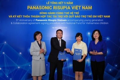 2015年9月8日(火)、ベトナム、ハノイ市の「パナソニック リスーピア ベトナム」がオープン5周年を迎え、記念セレモニーとともに、「ベトナムの子どものための国家基金」への寄贈式を開催しました。