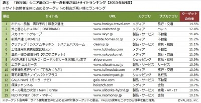 表1.は、【サイト訪問者全体に占めるターゲットの割合】が高い順にランキングしたものですが、1位に「阪急交通社」、7位「温泉・宿の宿泊予約【ゆこゆこネット】」、10位「格安海外旅行サイト「てるみくらぶ」」が入っています。いずれも新聞広告に掲載されたツアーや宿泊プランをネット予約できることが特徴的な旅行メディアで、シニア層との親和度が高いと考えられます。