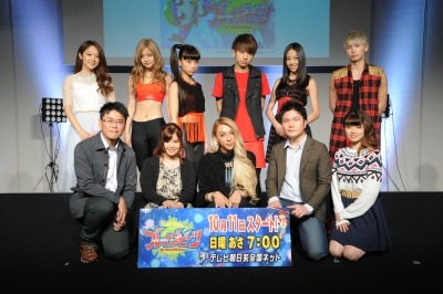 高橋めぐる、櫻井トオル、古城門志帆の3人は、アニメに登場するキャラクターそれぞれが個性的で、日曜あさから、楽しんで見てもらえるとアピール。ダンスの魅力を伝えたいと意気込んでいた。会見では、 lol-エルオーエル-、宮脇詩音がそれぞれ新曲となるテーマソングをライブで披露。lol-エルオーエル-のダンスアニメオープニングにふさわしい、弾けるような迫力あるパフォーマンスと、伸びのある歌声で聴く者を魅了する宮脇詩音の応援ソングが会場に響いた。