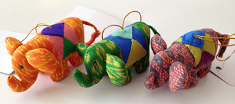 今回販売する「幸せのゾウ」は、カンボジアシルクでできています。ひとつひとつ手作りなのでそれぞれの顔も違います。これを500円で販売し、カンボジア女性の自立支援に充てたいと考えています。