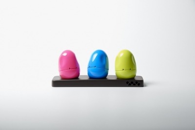 「エポンテ カラースタンプ」は、小さなお子様の手にしっかり馴染むデザインです。青・桃色・黄色といったボディーと同色のインキが内蔵されているスタンプで、色を重ね合わせて新しい色づくりも楽しめます。あそびを通して色への興味や関心が高まり、豊かな色彩感覚が育まれます。