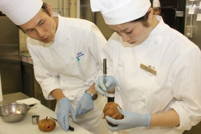 今回の勝間南瓜のランタン「なにわのジャック」は、料理で使用している勝間南瓜でハロウィンムードを盛り上げ、多くのお客様に喜んでいただけるよう当ホテルの調理スタッフが、かぼちゃのサイズや形状も含めユニークなジャック オー ランタンを作り上げております。なにわの伝統野菜である「勝間南瓜」を多くのお客様に知っていただき、そしてハロウィンの思い出に「なにわのジャック」といっしょに記念写真はいかがでしょうか。