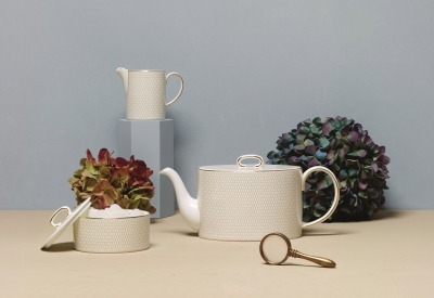 商品ラインナップは、ティーカップ&ソーサーにポット、シュガーボックス、クリーマーとプレートというティータイムを満喫できるアイテムを取り揃えています。プレートはラウンドプレートの他、ウェッジウッド ショップではスタイリッシュな8角形シェイプのオクタゴナルプレートもあり、様々なセッティングをお楽しみいただけます。