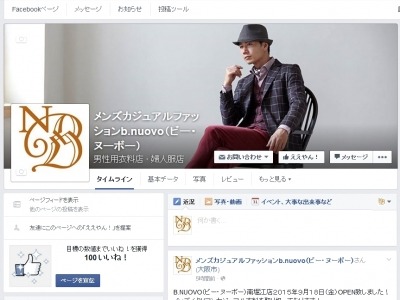 「おしゃれになりたい」を叶えるメンズのためのフェイスブックページ(URL:https://www.facebook.com/bnuovo)を開設致しました。