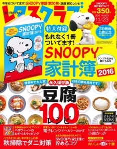 ◆そして10月24日発売号には、こちらも毎年大人気!の、スヌーピーと仲間たちの「SNOOPYカレンダー2016」がつきます。特製シールはなんと102枚! 12カ月のフライパンおやつレシピもついて、皆さんへ素敵な1年をお届けします。