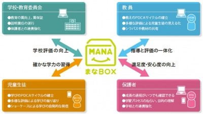 これらを授業の中で繰り返し行うことによって、学びのPDCAサイクル(教員にとっては教えのPDCAサイクル)を確立することができます。このように、「まなBOX」は新しい授業スタイルの構築を支援する教育フレームワークとして機能します。