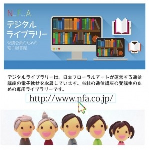 『日本フローラルアート』(代表取締役:吉森新)は、40年以上の歴史を持つ日本の代表的な通信教育企業であり、同社が運営する通信教育ポータルサイト「楽学ネット」では、向学心旺盛な方の知的欲求を満足させ、毎日を充実させることができる講座に巡りあえるよう、食・健康・趣味・資格・特技など、さまざまな分野の通信講座を取り揃えています。『NFAデジタルライブラリー』は、同社会員向けのクラウド型電子図書館第1号です。
