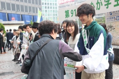 10月16日(金)10:30から、東京・新宿駅小田急百貨店前であしなが育英会の奨学金を受けて進学した遺児大学生やあしなが育英会の職員ら約30人が支援を呼びかけました。