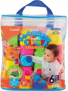 「baby Clemmy やわらかブロック」シリーズは赤ちゃんに優しいやわらかい素材のブロックなので、踏んだり投げたりしても痛くなく、はじめてのブロックとして安心して遊べます。汚れたら水洗いできるので、衛生的にご使用いただけます。ブロックは赤ちゃんがつかみやすく、口に入らない安全な大きさになっています。成長に合わせた遊び方で長く遊んでいただくことができます。大容量の30個入りなので遊びの幅が広がります。