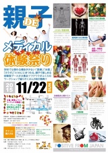 医療イベント「親子DEメディカル体験祭り」のクラウドファンディングが、ふだん使いのクラウドファンディングサービス”アイムイン”(https://www.im-in.it) で、2015年10月19日(月)にスタート。イベントチケット購入か、イベントへ参加いただけない場合もイベントやNPO法人ポジティブ・フロム・ジャパンの活動にご賛同いただける方は支援ができます。イベントは2015年11月22日(日)10時~16時に秋葉原中小企業振興公社(第1会議室)で、医療に関わる看護師、薬剤師、介護福祉士、理学療法士、栄養士など、多彩な分野の専門家の発案により『NPO法人ポジティブ・フロム・ジャパンのことをもっと知ってもらうため、そして子供たちに夢を与えるため』開催されます。8種の医療体験を親子で一緒に体験でき、オーガニック食品販売やフリーマーケットも開かれます。