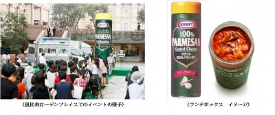 イベントでは、巨大な「クラフト100%パルメザンチーズ」型のベンディングマシンを設置し、同商品との意外な組み合わせが楽しめるオリジナルのランチボックスを300個限定で無料配布いたします。レシピは10種類で、各30個ご用意いたします。