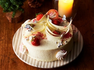 ムを合わせたショートケーキ。飾りのメレンゲも食感にアクセントを加え