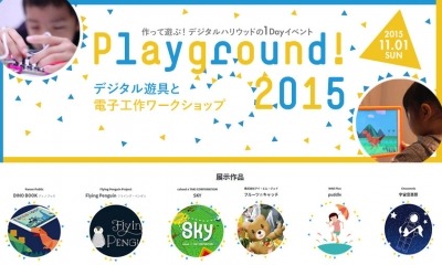 「Playground!2015」は遊べるインスタレーション作品と電子工作ワークショップを通して、デジタルのモノづくりを子どもから大人まで、身近に楽しむことのできるイベントです。