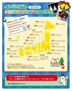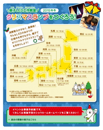 パナソニック株式会社が全国に展開する、住まいの最新設備や建材を見て触ってご確認いただける「パナソニック リビング ショウルーム」では、毎年ご好評いただいている親子LED工作教室『クリスマスランプをつくろう!』を2015年11月7日(土)より、全国22箇所のショウルームで開催します。