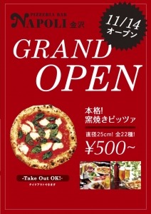 同店舗は全国に展開する本格窯焼きピッツァを提供する「PIZZERIA BAR NAPOLI」の石川県1号店。ランチタイムには「PIZZERIA BAR NAPOLI」名物の直径25cmの本格窯焼きピッツァ8種類を500円でご提供致します。ディナーでは22種類の本格窯焼きピッツァ(500円~)の他にもパスタ、魚や肉料理もご提供致します。さらに、15:00-19:00の時間帯にはハッピーアワーを実施し、アルコールを含むドリンクを各300円の特別価格でご提供致します。