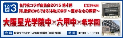 ご好評をいただいております「名門校コラボ座談会」の2015年度第4弾といたしまして、≪大阪星光学院中×六甲中×希学園≫を下記要領にて実施いたします。