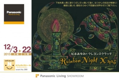 パナソニック株式会社 エコソリューションズ社(以下、パナソニック)は、住宅設備総合ショウルームである「パナソニック リビング ショウルーム 広島」(広島県広島市中区中町7-1)の2階 喫茶内のギャラリーコーナー「カフェギャラリー・N」において、2015年12月3日(木)より12月22日(火)まで、「松本あゆみのクレヨンスクラッチ『レインボー ナイト クリスマス』」を開催します。