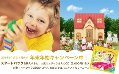 株式会社デジタルブティック(東京都港区 代表取締役:安西正育)は、同社が運営する、レゴやシルバニアファミリーを使った子ども向けオンライン英会話サービス「ドリームパイ」において、これからオンライン英会話を始めるためにスタートパックを購入するユーザに対して、2016年1月末まで、もれなく人気のエリックさんの音楽CDをプレゼントします。