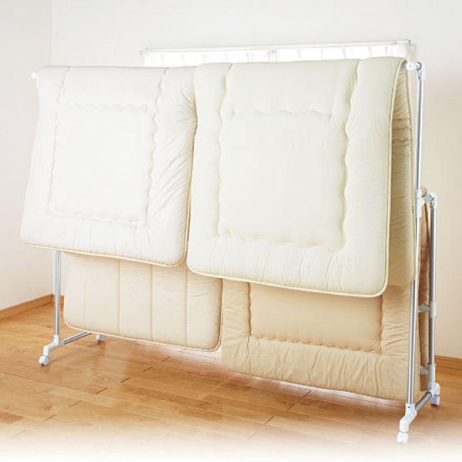 外干ししなくても、花粉を避けて、室内で一度に4枚ものシングルサイズの布団が部屋干し可能。