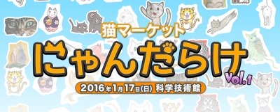 「にゃんだらけ実行委員会」は、2016年1月17日(日)に東京・科学技術館で開催する猫好きさんの祭典「猫マーケット にゃんだらけVol.1」(以下、にゃんだらけ)の前売り入場券(700円/当日券1,000円)をローチケ.com、チケットぴあ、イープラスにて販売開始、好評発売中です。
