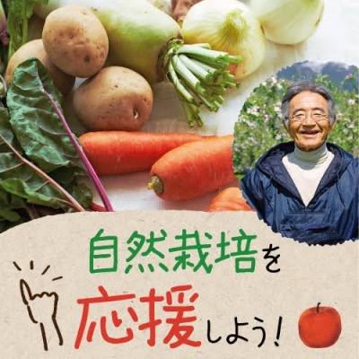 木村秋則さんが提唱する自然栽培を応援する「木村秋則自然栽培農学校・自然栽培応援倶楽部」が発足しました。このプロジェクトにみんなの想いと行動を集め、一緒に活動いただけるサポーターを募集しています。入会いただき会費として¥12,000(消費税込み¥12,960)をお支払いいただくと、会員証のほか、手間がかかるため、一般的に路地栽培野菜に対し1.3倍程度の価格が付けられる自然栽培農法で作られた野菜¥3,000相当を、1年間のうち4回お届けします。