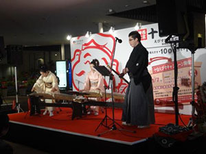 このイベントは、縁起のよい「えびす舞(注)」の披露、新春らしい和楽器の演奏等を通じて、えびす宮総本社の西宮神社と十日えびすをPRし、より多くの方に、実際に足を運んでもらうことで、当社沿線の活性化を図ることを目的に、毎年新春に開催しているものです。今回は、初めて新春のおもてなしとして鏡開きを行い、ご観覧の方に西宮のお酒を振る舞います(※)。