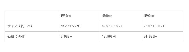 素材 :(天板・棚板・飾り板)合成樹脂化粧繊維板(塩化ビニル樹脂)、(前板)合成樹脂化粧繊維板(ポリウレタン塗装)、(その他)プリント紙化粧繊維板