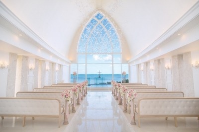 「アクアグレイス・チャペル」は、沖縄・読谷村の宇座ビーチに面し、「水(Aqua)」と「恵み・優美(Grace)」をコンセプトに独立型チャペルとバンケットが一体化した複合挙式施設です。2015年9月に全面リニューアルを行い、大切なゲストと楽しめる、より一層贅沢なプライベート空間へと生まれ変わりました。