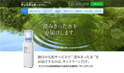 工場長が語る「こだわりの蒸留製法」、ご家庭または事業所の「お客様の声」など、サイトでは「澄み切った水 ディスティオ」の商品やサービスの特徴を紹介しています。