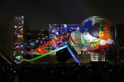 ・超高輝度プロジェクターを使用した高精細フルCGを投影