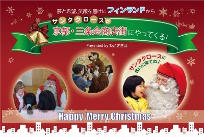 株式会社わかさ生活は、『ブルーベリーアイ』の原材料で北欧のブルーベリー『ビルベリー』の恩恵に感謝し、恩返ししたいとの想いから、今年も本場フィンランドから本物のサンタクロースを日本に招待します。11年目を迎える今年2015年は、12月23日(水)に京都三条会商店街で、サンタクロースと子どもたちが触れ合えるクリスマス会を催し、夢と希望・笑顔を届けます。