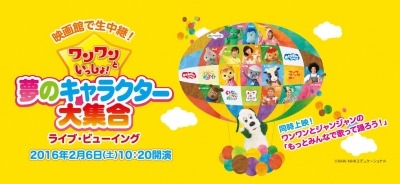 「ワンワンといっしょ!夢のキャラクター大集合」の模様を、全国の映画館へ生中継することが決定いたしました。