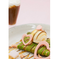抹茶クレープとドリンクをセットにした、茶寮都路里本店限定のバレンタインメニュー。