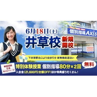 【WAO!】個別指導Axis(アクシス)<小中高校生対象>が、6月18日(土)東京都に「井草校」を新規開校!