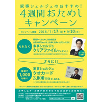 「家事シェルジュのおすすめ!4週間おためしキャンペーン」7月17日(日)から9月10日(土)まで実施