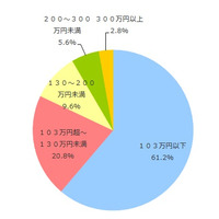 <主婦パートの働き方に関する調査>主婦パートの個人年収、配偶者控除の適用ライン「103万円以下」が61.2%