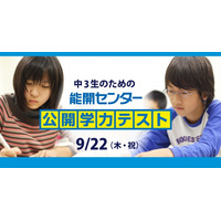 【WAO!】中3生のための、能開センター「公開学力テスト」。 9月22日(木・祝)全国75会場で実施! 8月18日(木)から申し込みスタート。