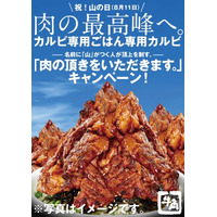 祝!「山の日」施行記念 名前に「山」がつく方のいるテーブルには「山」の数だけ「カルビ専用ごはん専用カルビ」を追加でご提供 「肉の頂きをいただきます。キャンペーン」名前に「山」がつく人が頂上を制す。