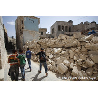シリア/新画像・映像情報【報道参考資料】・がれきの中を通学するアレッポの子どもたち・アレッポ給水支援・ドゥマへ人道支援物資到着