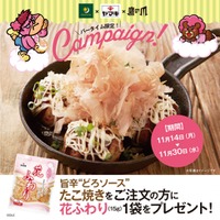 ヤマキ×「秘密結社 鷹の爪」×「カフェ&バー プロント」 コラボレーションキャンペーン「旨辛!“どろソース”たこ焼き」をご注文の方先着10,000名様に「花ふわり(R)」をプレゼント!
