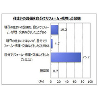 現住まいの設備のDIYリフォーム経験者は2割弱。「照明の取替え」「ふすま・障子・網戸の張替え」「水…
