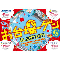 全部で約240店舗が参加!お台場エリアの4大商業施設が大規模バーゲン開催。最大80%OFF!!合同バーゲン「お台場ーゲン」 12月26日(月)スタート!