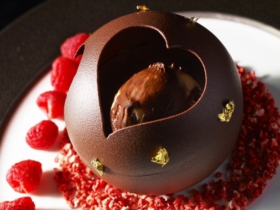 バレンタインを華やかにお楽しみいただけるよう、ハート型のラベルが印象的なスパークリングワイン「ビバ ラ ヴィーダ カバ ブリュット」のフルボトルをご用意。さらに、男性へのバレンタインサプライズとして、ハート型にくり抜いたショコラドームで彩った「フォンダンショコラとバニラのマーブルアイス ショコラドーム」をご提供いたします。