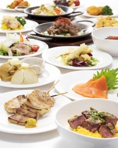 旭川市近郊の野菜や北海道産の海の幸を使用したメニューをはじめ、ご当地料理や郷土料理などをご用意。全14品を90分間のテーブルオーダーバイキングでお好きなだけオーダーいただけ、できたてをテーブルにお届けするほか、旭川市名物 新子焼きや牛乳鍋など全4品をセットにした特別メニューをおひとり様につき1セットずつご提供いたします。