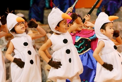 その中でも、毎年、年度末に開催されるUTABUTAIは、園児たちの毎日の積み重ねを表現する最高の場であり、子どもの得意とする「ごっこ遊び」の延長に位置します。特に年長児が挑戦する、オーケストラの生演奏と子どもたちの歌声とダンスで展開するプチミュージカルは、毎年、大きな感動を呼び、スタンディングオベーションに包まれます。今年のプチミュージカルの演目は「アラジン」です。今年も園児たちが創り出すステージは、多くの来場者に感動を届けてくれるでしょう。