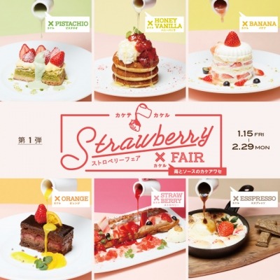 カフェ&ブックス ビブリオテークでは1月15日(金)から3月31日(木)の期間、オリジナル苺デザートと"掛け合わせた"食材の手づくりソースを"かけて"食べる『カケテ!カケル! ストロベリーフェア』を開催いたします。ビブリオテークが提案する“苺とソースのカケアワセにより、苺デザートの新たなおいしさが楽しめる期間限定フェアです。