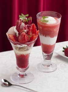 ゆたかな甘み&香りとジューシーな食感が特長のブランド苺「ロイヤルクイーン」を贅沢に4.5粒使用したパフェ。苺によく合うバニラアイスやクリーム、ラズベリーグラニテを絶妙なバランスで組み合わせました。旬ならではの果実のおいしさをご堪能ください。