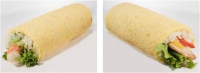 左右で異なる食材を使用し、左から食べると海老とアボカド、右から食べるとローストチキン。1本で2つの味が楽しめるハイブリッド恵方巻!